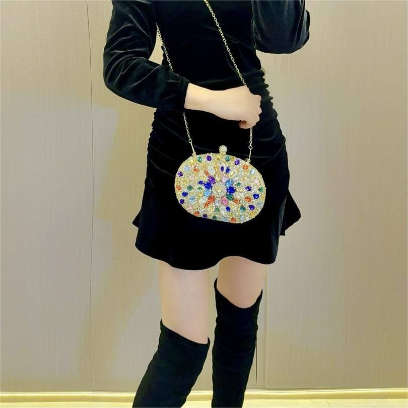 Lady’s quality water diamond bag, evening dress, banquet hand-held bag, diamond-encrusted hand-held dinner bag, cheongsam bag