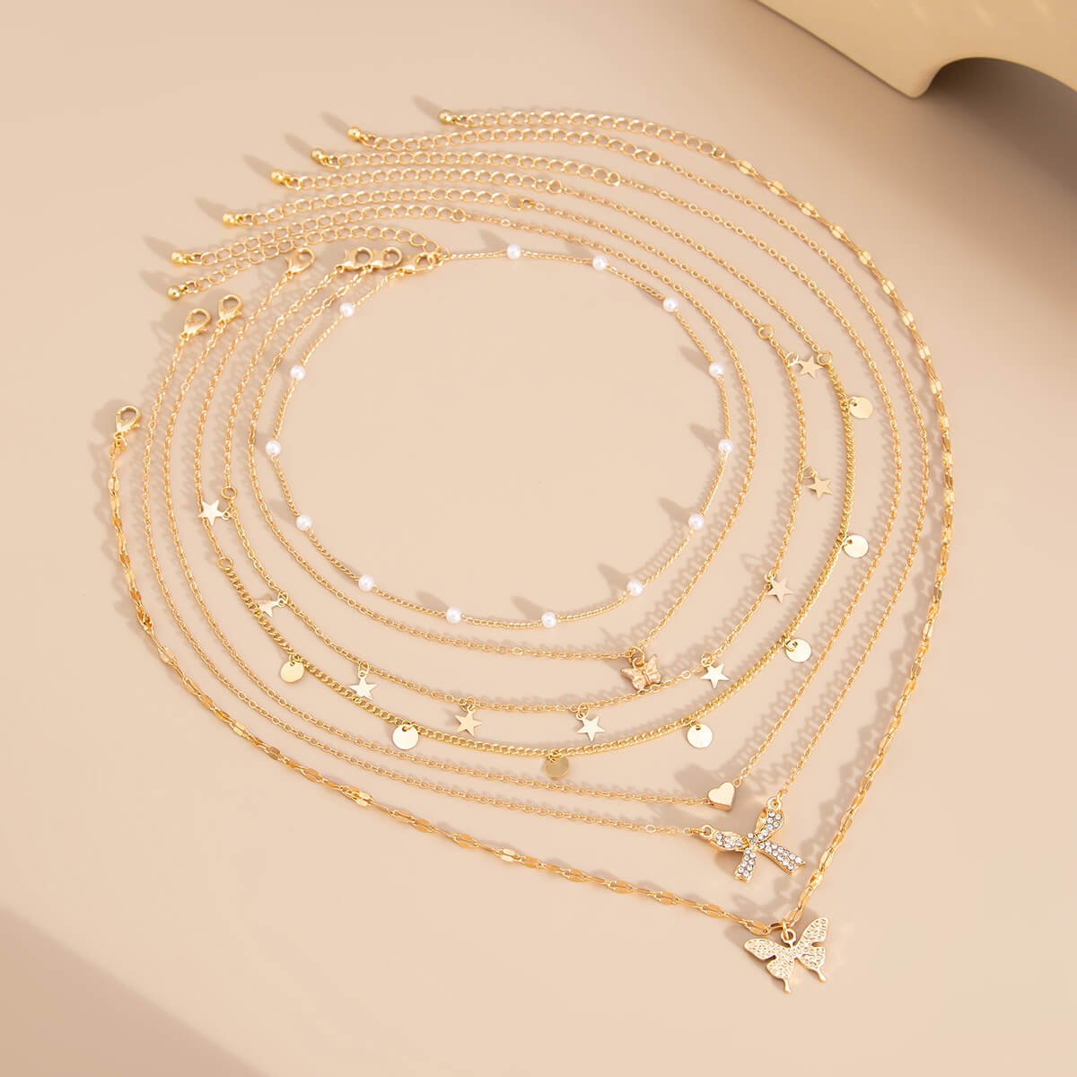 Fashionable Butterfly Alloy Pendant Collarbone Chain Simple And Niche Alloy Necklace Set