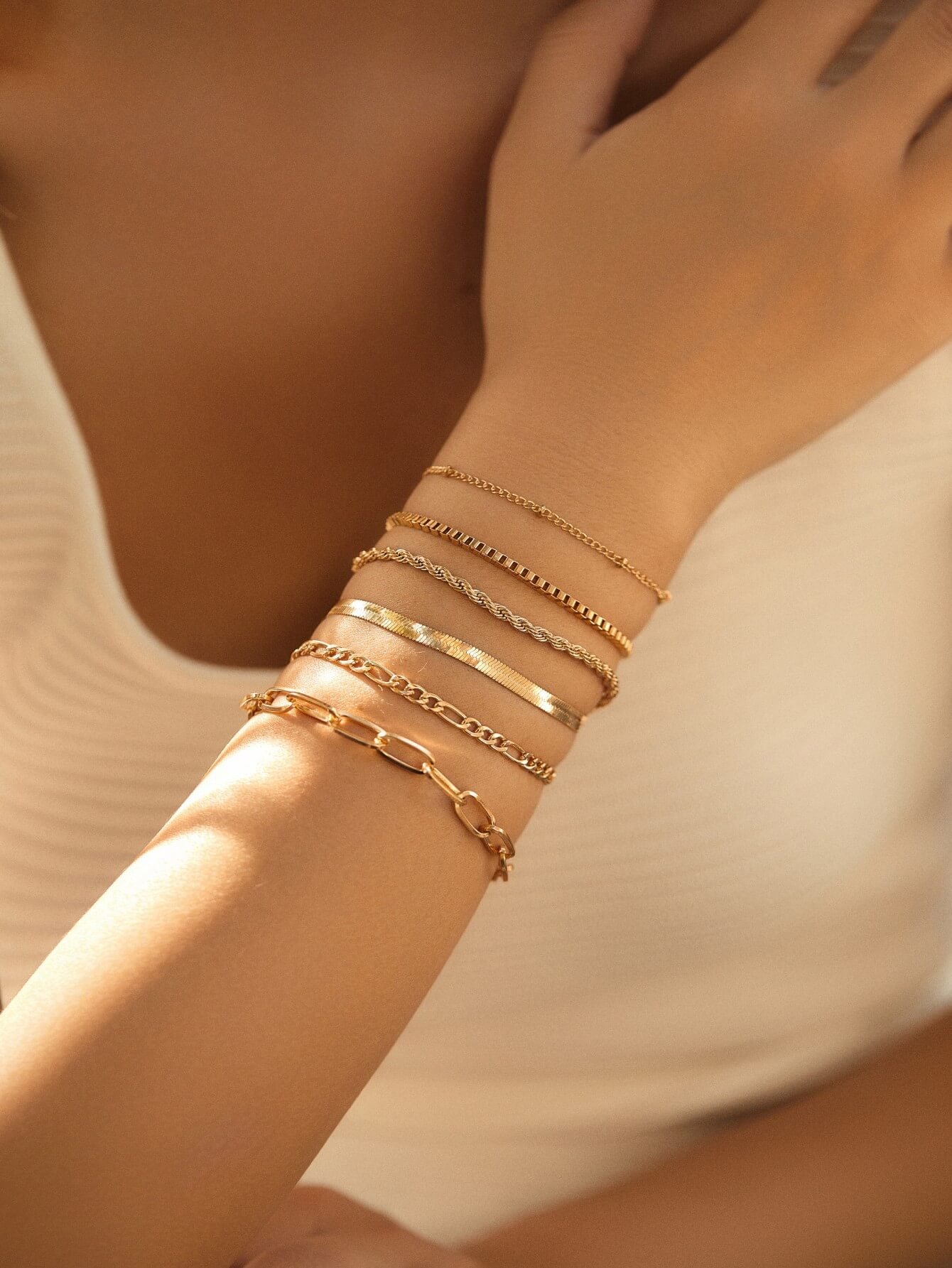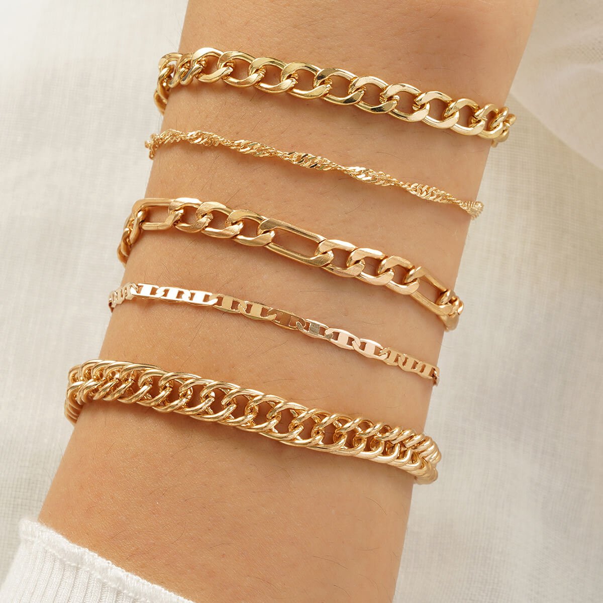 Multi-Piece Set Metal Figaro Chain Twist Bohemian Minimalist Bracelet