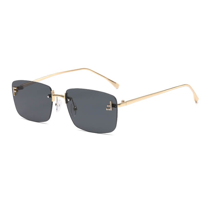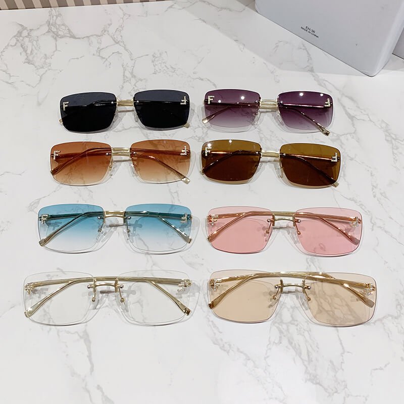 Rimless Rectangle Sunglasses Frameless Square Glasses Vintage Transparent Eyewear for Women Men