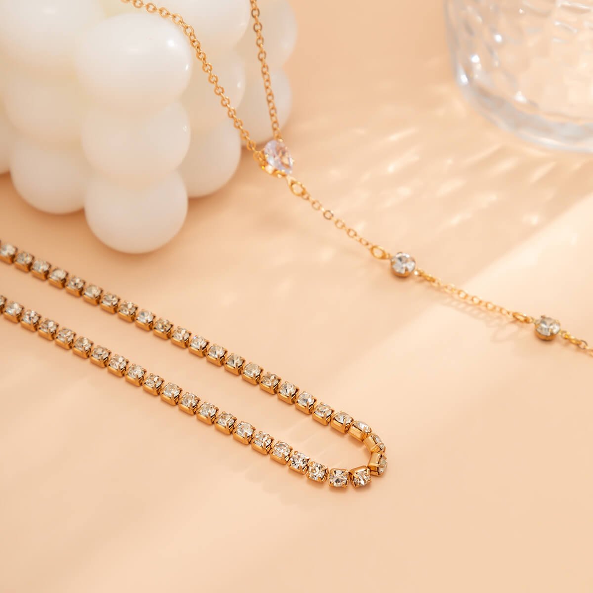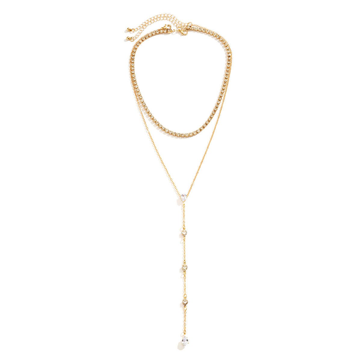 Simple And Elegant Y-Shaped Full Diamonds Fashionable Claw Chain And Tassel Back Chain Necklace
